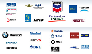 En la prestigiosa cartera de clientes, entre otras se encuentran empresas tales como: Telecom., Telefónica, Banca Nazionale del Lavoro, Banco Ciudad de Buenos Aires, Red Link, Unifón, Sade, Fundación Pérez Companc, Shell, Aguas Argentinas, Total Austral, Petrolera San Jorge, Aeropuertos Argentina 2000 y Repsol YPF.